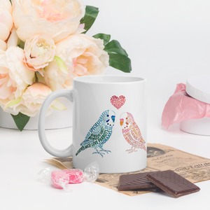 タイポグラフィのセキセイカップルが毎日ほっこりさせてくれるマグカップ。